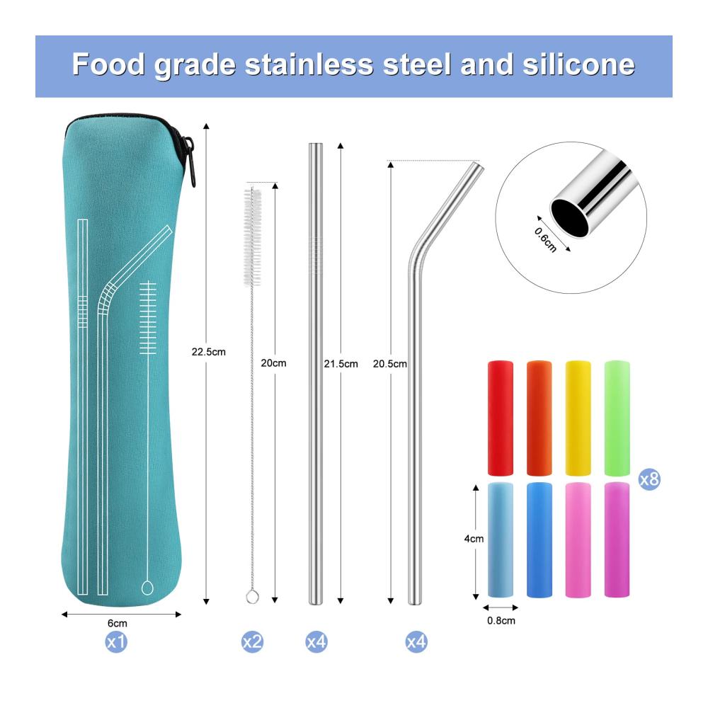 ☆【Set enthält】Strohhalme enthält 4 gerade strohhalm 4 Ellenbogen trinkhalme 8 Silikonschutzhüllen 2 Nylon Schlauchbürste 1 Aufbewahrungstasche. Zwei verschiedene Formen von trinkhalme edelstahl können auf verschiedene Körbchen angewendet werden.