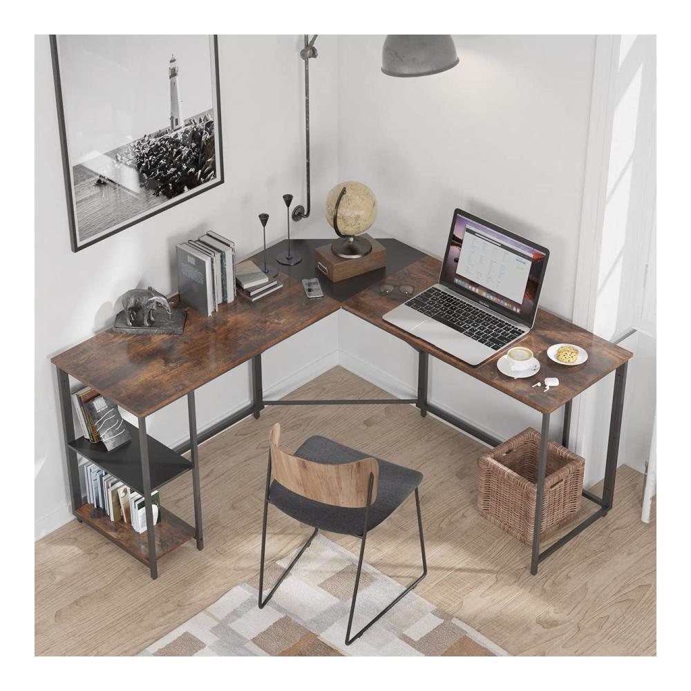 [L-förmiges Design] Dieser L-förmige Computertisch kombiniert einen stabilen Metallrahmen und einen charmanten Desktop im Retro-Look. Kratzfest, starke Reibung und platzsparend. Geeignet für den Dekorationsstil der meisten Familien.