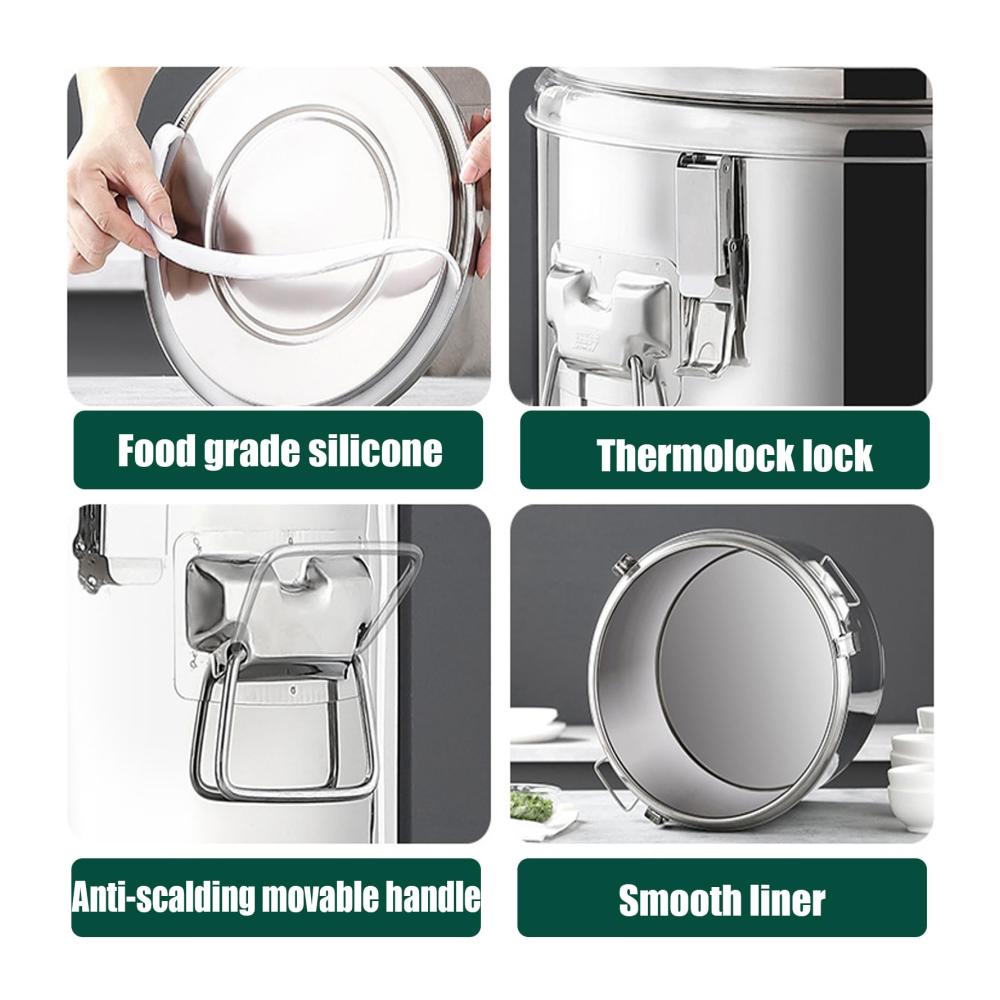 PREMIUM-MATERIALIEN: Unsere isolierten Eimer bestehen aus strapazierfähigem und schlagfestem, verdicktem Material und gewährleisten so eine hervorragende Druckbeständigkeit. Die Mittelschicht besteht aus langlebigem Schaumstoff, der isolierend und wasserdicht ist. Der Innenraum aus Edelstahl ist sicher und geruchlos und sorgt für Wärme oder Kälte Container.