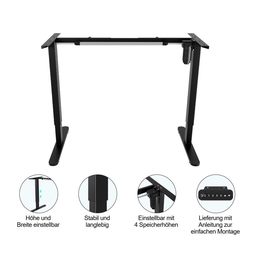 Entdecken Sie den ultimativen Arbeitskomfort mit unserem elektrisch höhenverstellbaren Schreibtisch. Das Tischgestell mit starken Motoren bietet eine bequeme 4-Memory-Steuerung und einen Touchscreen für mühelose Anpassungen. In elegantem Schwarz gehalten, bietet dieser Schreibtisch fortschrittlichen Kollisionsschutz für zusätzliche Sicherheit.